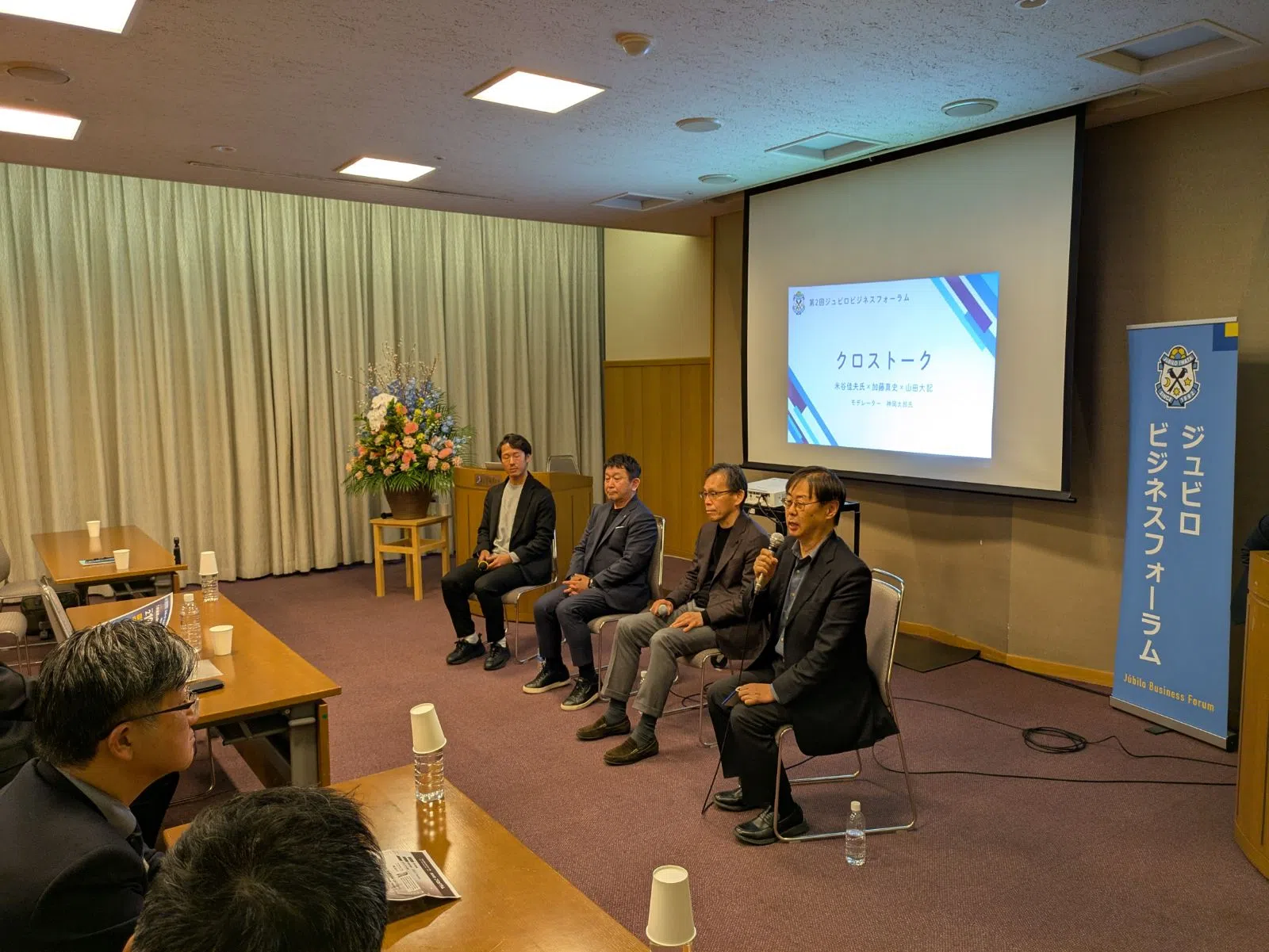 米谷氏、加藤取締役、山田CROにモデレーターの神岡氏を加え、活発な意見交換や質疑応答が行われました。その後、ご来場の皆様との懇親会を開催し、盛況のうちに閉会いたしました。
