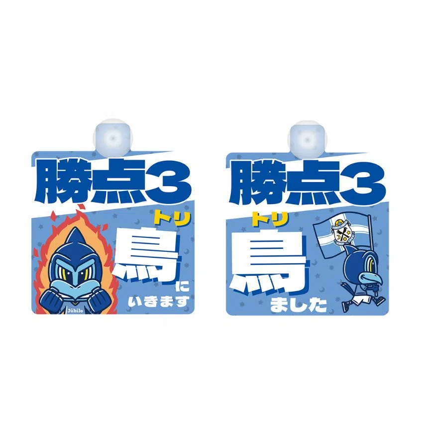 試合前、勝利後で2種類の絵柄を使い分けられる、三(3)光鳥のジュビロくん勝点3グッズシリーズが登場!