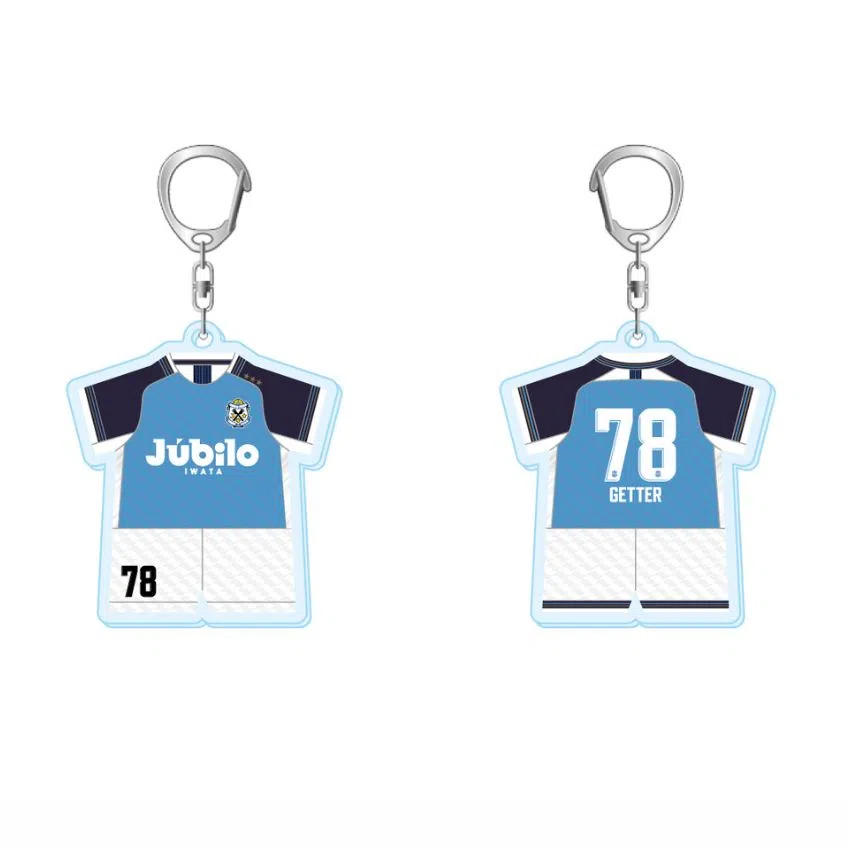 今シーズンのジュビロ磐田ユニフォームを模したデザインに、背番号78とニックネーム「げったー(GETTER)」をプリントした、小さく可愛らしいアクリルキーホルダーです。