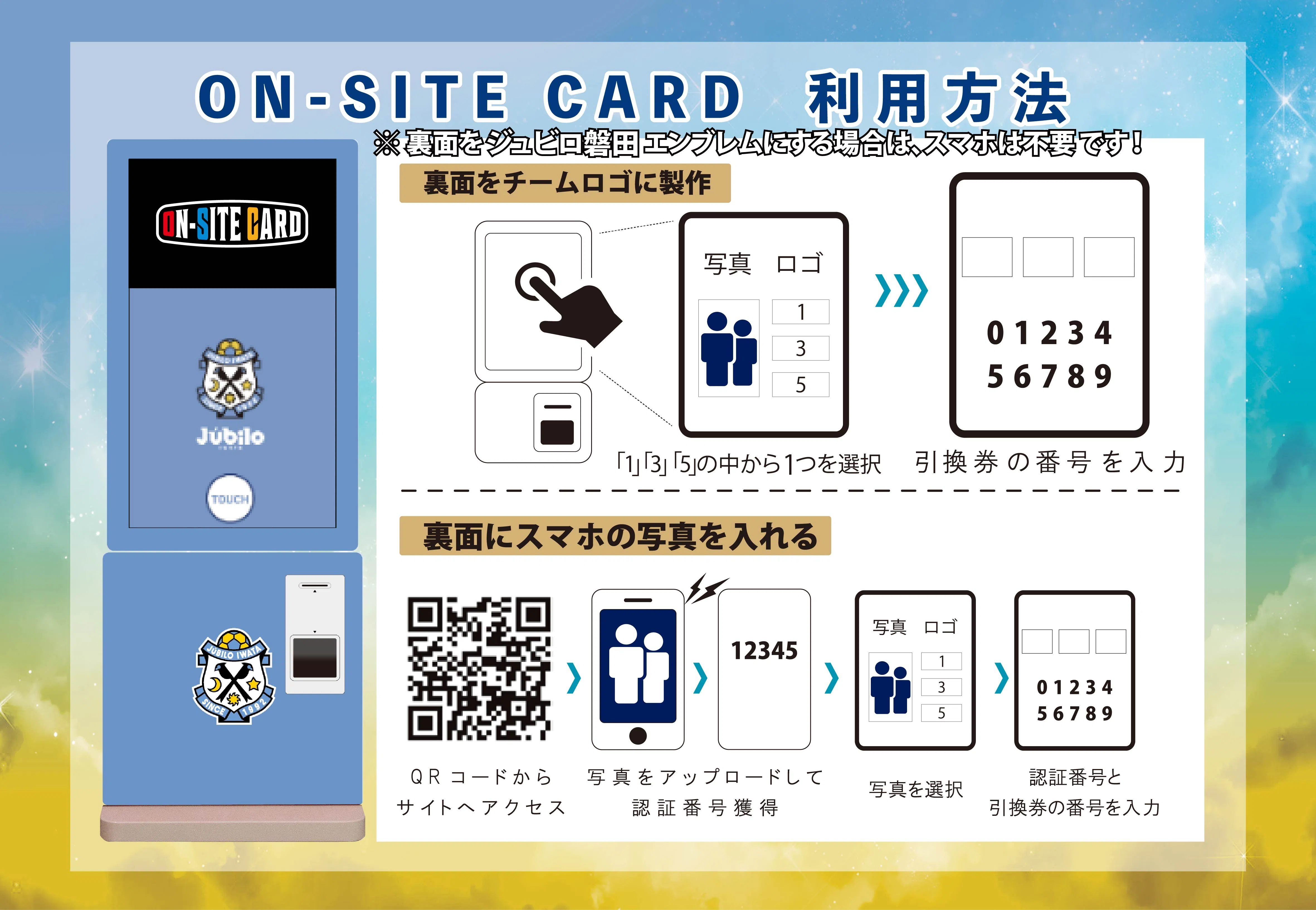 ご自身のお手持ちの画像を世界に1つだけのカードにできるオンサイトカード。片面にはランダムで選手写真が掲載されます。運が良ければ選手サイン入りのカードや特別なカードが当たるかも!