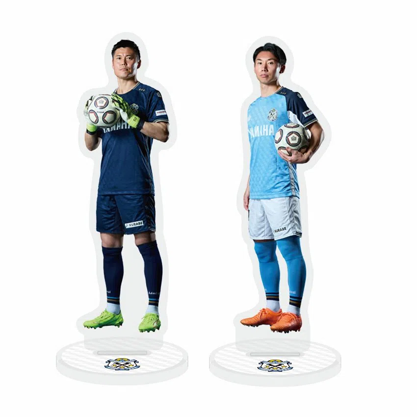 試合前集合写真を使用したアクリルスタンドです。エンブレム型のプレートにはスコア・得点者・来場者数が刻まれます。右側手前には、AWAYアクリルスタンド(別売り)をはめ込むことができます。