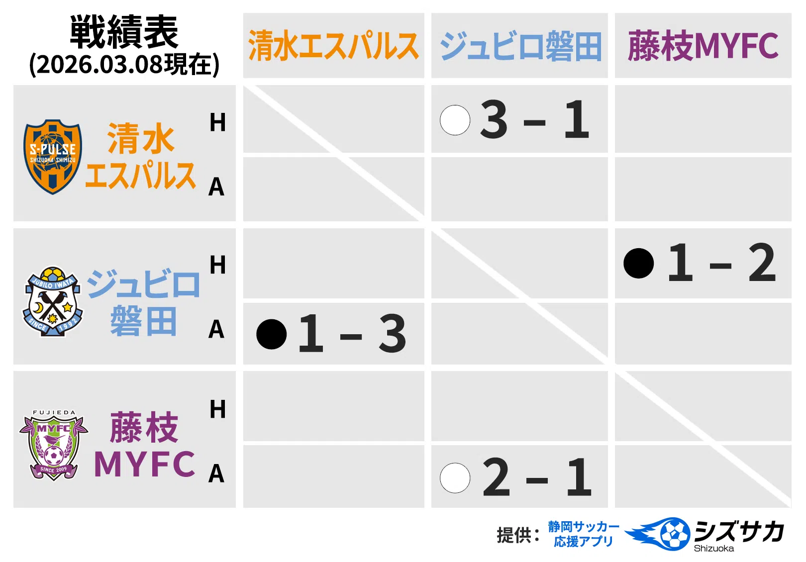 3月8日(日)ヤマハ大久保グラウンドで行われた、藤枝MYFCとの静岡県Jリーグ加盟3クラブ強化トレーニングマッチの結果をお知らせいたします。